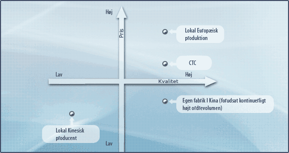 Globalisering samt det faktum at Kina i dag er verdens fremstillingscenter vedrører de fleste eropæiske virksomheder. Herunder er oplistet fordele og ulemper ved forskellige måder at tackle dette på:
